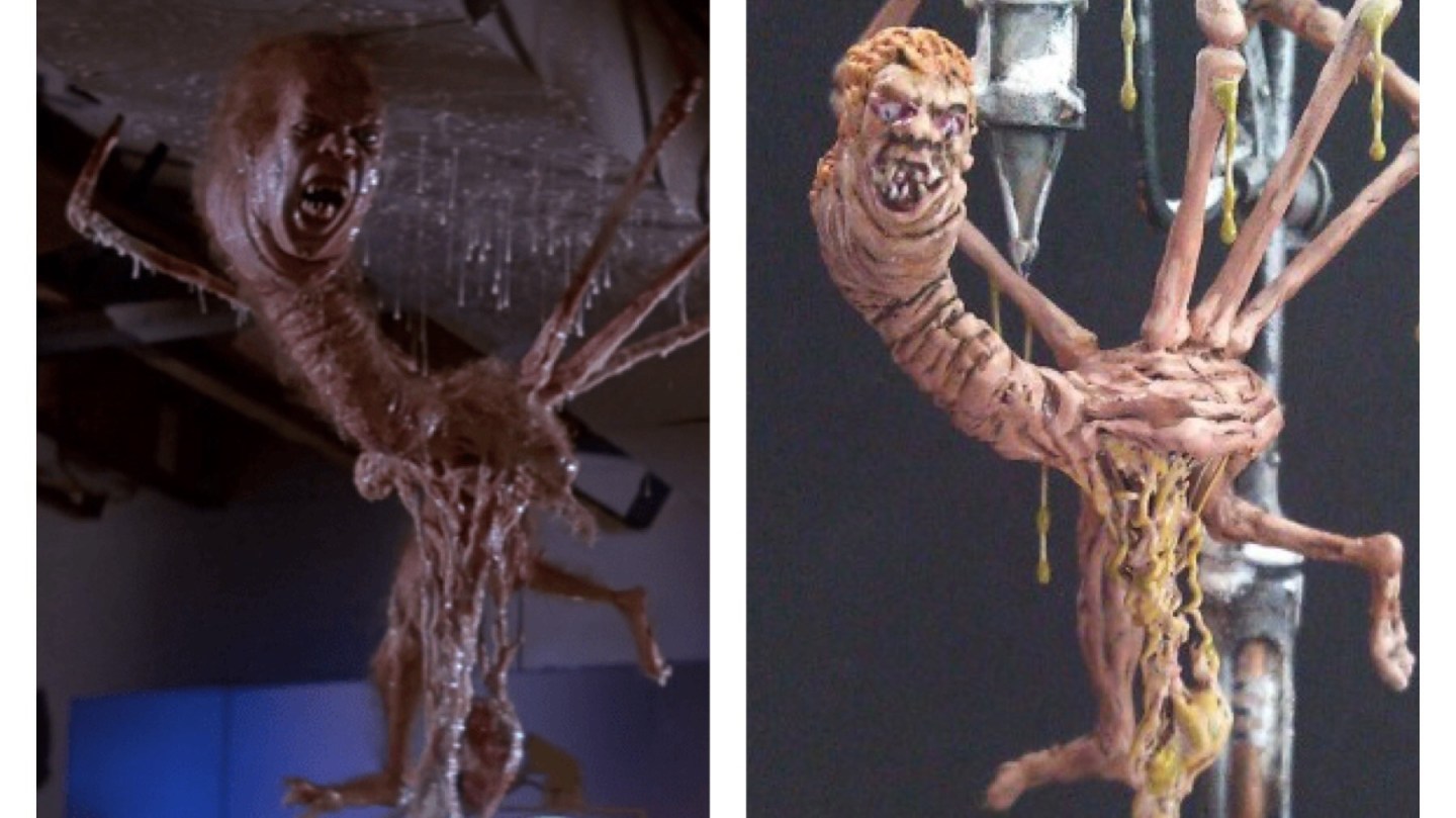 This guy is similar to my White Dragon and the Raptor which were inspired by the film, the Thing. Where this guy diverts in development is that rather than just taking qualities that reminded me of The Things aesthetic gribbli-ness… I wanted to do a full on homage to the film, so I took a still from the film. As far as I’m concerned one of the most Iconic moments that encapsulates horrifying nature of the monster. The Norris Thing.