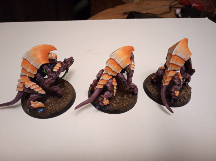 Thank you very much! My colour scheme started based on how I remembered genestealers looking from my childhood. Blue carapace and purple bodies. Then I wanted a contrasting colour for the shells when I did a Carnifex’s and just tried that. It’s pretty intense like my Hive fleet consumed the 80’s and adapted to it. I like to think of it as a sort of poisonous tree frog colour scheme. It’s not changed much since my first ones but I might do a sort of tutorial/walk through of my Tyranids Colour scheme and actually try to nail down the detail areas I’ve never settled on.