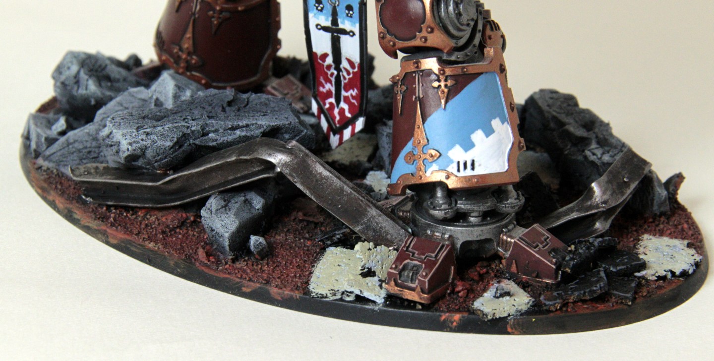 Now I don’t know about you guys but for most of my bases I just throw some PVA onto the base and sprinkle my basing material onto it. Nothing more than that really. What this tutorial will cover is the few times I’ve done Minis where I want to make them look heavy, so generally speaking we are talking robots and monsters, but there is no reason you couldn’t apply these methods to make a tank or truck look heavy, or even just get ideas for things you can add to a large base to break them up a bit. If you want to see a tutorial on infantry bases, Warbringer has done one here.