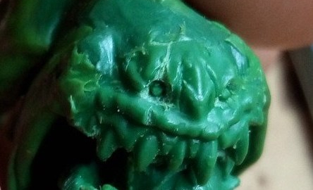 So I put the squig together, following very much the same assembly as the actual Squigs. I actually added at this stage the only non-Green Stuff part, the throat, to the mouth to help with the structure and placement of parts.  Next I needed a goblin rider… but I wasn’t as confident in casting a load of intricate parts for the goblin. Fortunately I had an idea from another Squig I’d seen…