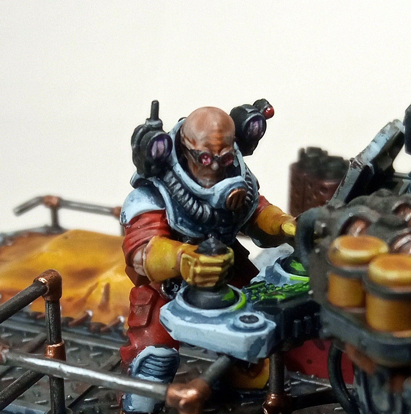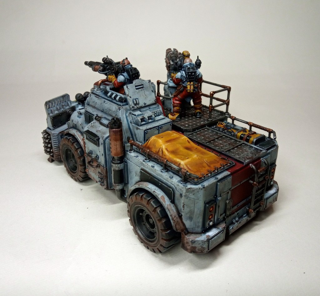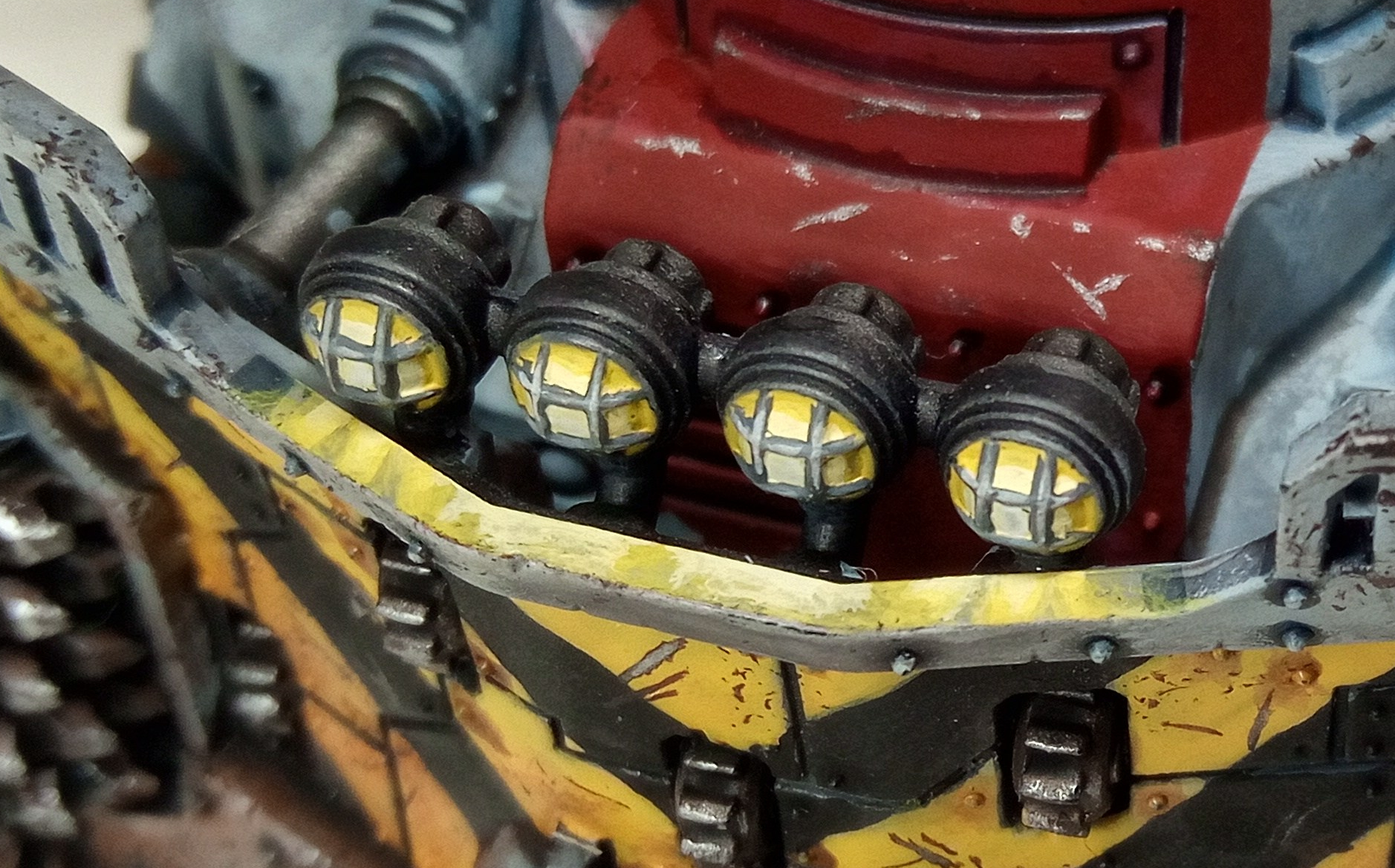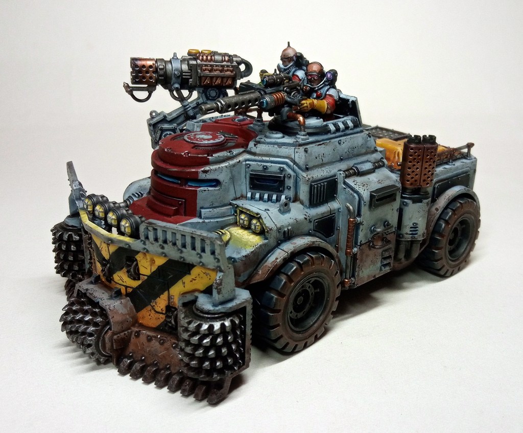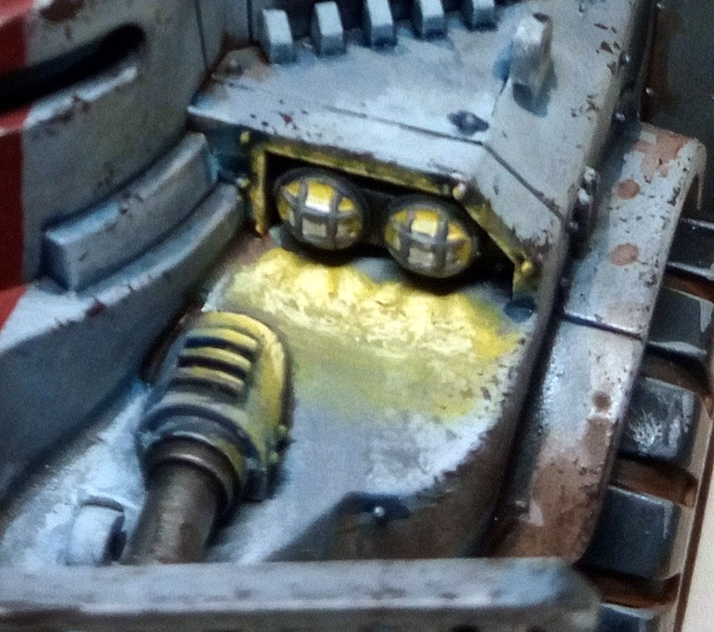 1. I am, thanks! I was really happy with the weathering I did, even though I was really worried about doing it. The OSL from the headlights is only 2 colours but really helps! The muzzle burn I just followed the Warhammer TV video. Cool, simple details that really pull it all tighten up the mini