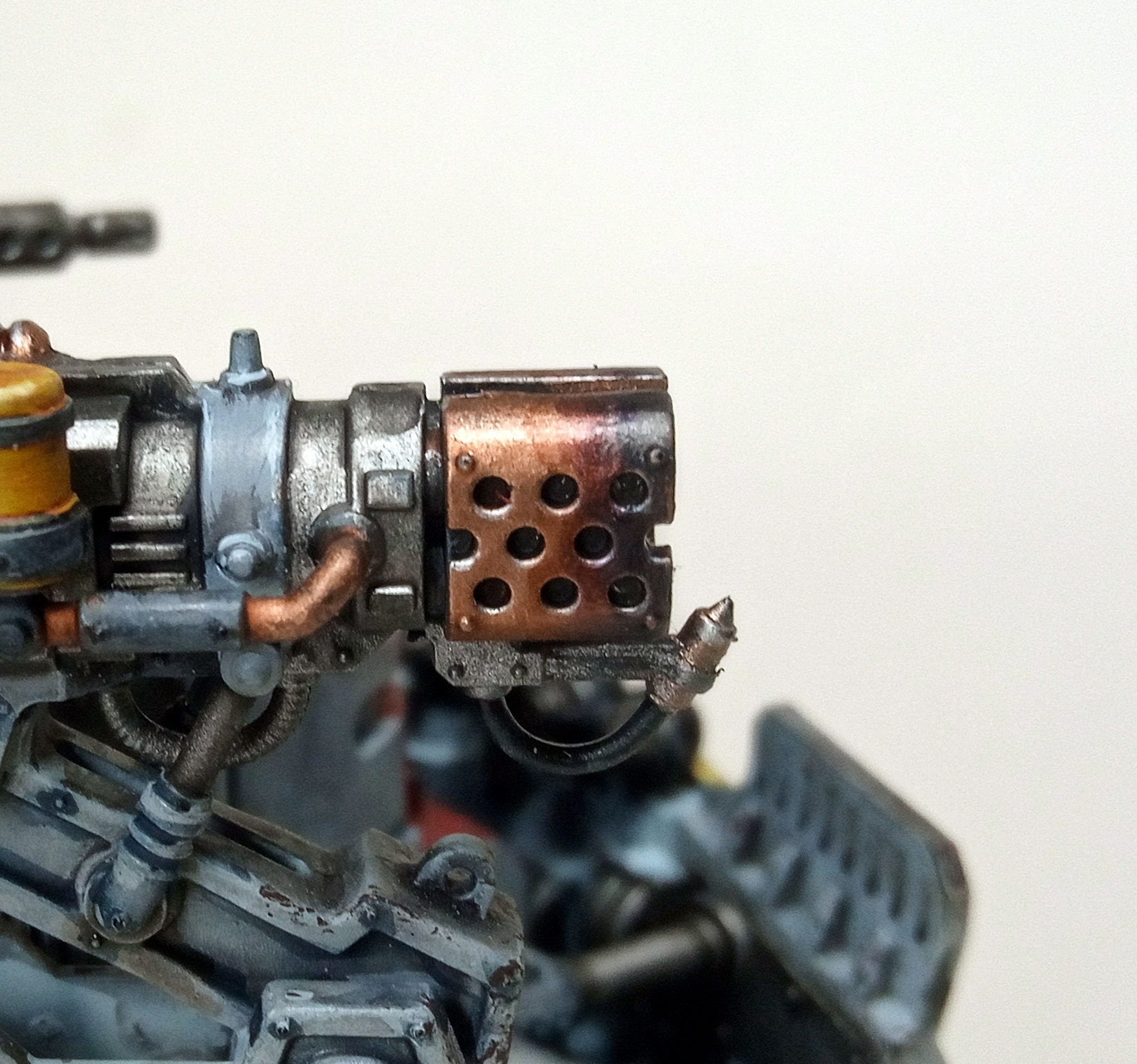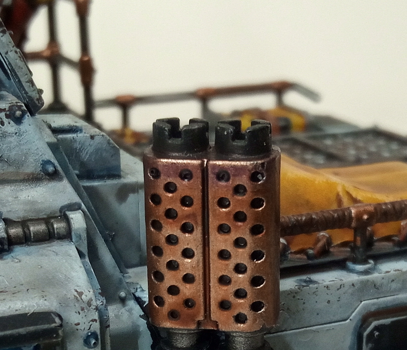This was my first effort painting heat burn. I tried to do it a lot more subtly on the exhausts than on the flame thrower. I followed Duncans Tutorial for this.