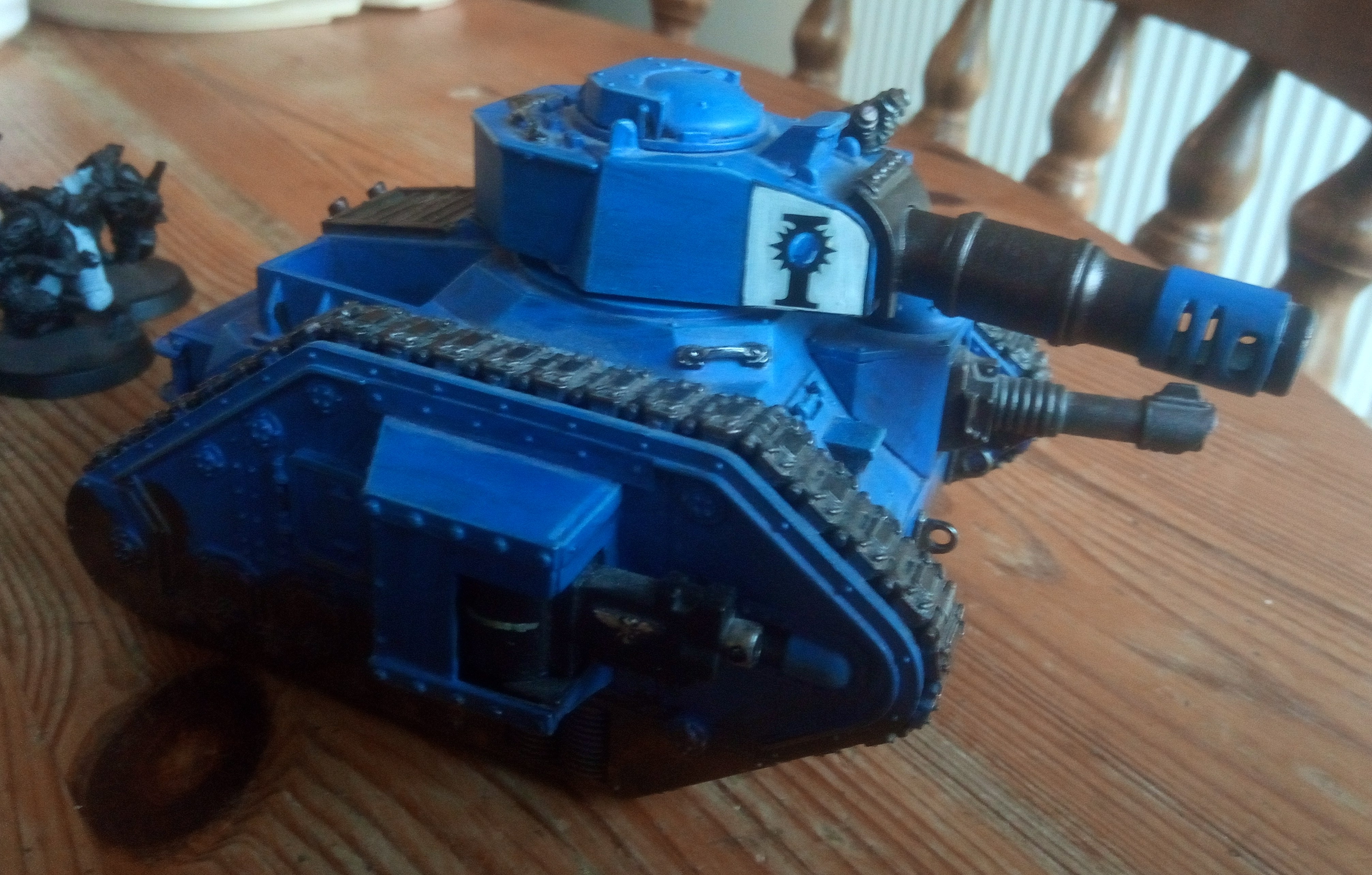 My other problem has been firepower, my first 500 points had NO RANGE and NO PSYKERS (we realised that I had never played a game without psykers). This is why I took the ranged troop choice last month, not a lot of staying power there though… so I added a tank this month, which also helps with model count!