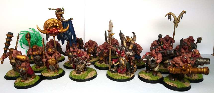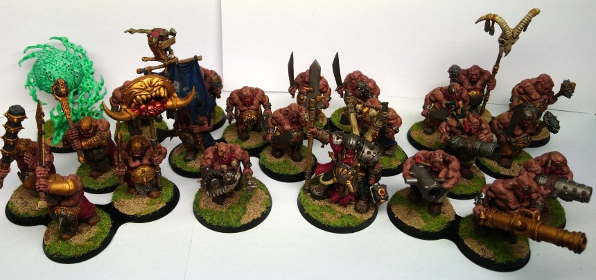 So this month my pledge had been my Tyrant and the 4 Ironguts at a healthy 380pts. But I managed to smash through them quickly early in the month so put another battleline unit in of 4 Leadbelchers worth 160pts giving me a whopping 540pts done for this month! I chose to paint the trousers of my Leadbelchers in old world Nuln colours of white and black as a nod to Warhammer fantasy… In fact all the units have some element of colour from one of the Old World Empire regions 😉