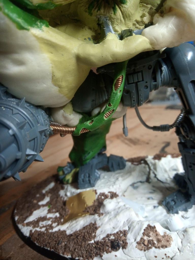 I’m really happy with how it turned out, If I was going to do anything more I think I would have looked at the growths I added. Those were added at the very beginning, almost like sketches of the growths I might want to add. most of the rest of the knights body had further layers of green stuff on top of the milliput, and while I think they look ok I think towards the end of the knight I didn’t really pay them enough attention. maybe the cables around them meant that there was enough detail already and that’s why I stopped focusing on them. Hopefully when painted it wont be an issue at all.