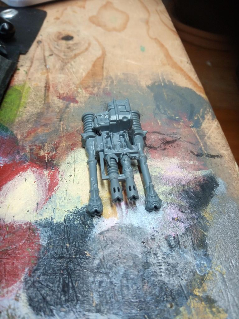 I didn’t want this mess all over again… but I encountered a new issue. I wanted to put one on, but I wanted it to look really cool. Like… integrated in a very non conventional way. I knew that this would mean that I couldn’t really do options though. So I spent some time asking advice from people on which weapon to pick. Eventually to come to a conclusion, get ready to make it and get blindsided again! This time, the revelation wasn’t that the knight couldn’t take the weapon I chose… it was that i was using a Desecrator kit as a base, and THAT cant take a carapace weapon… which meant THERE WASN’T ONE IN THE BOX!!!!!