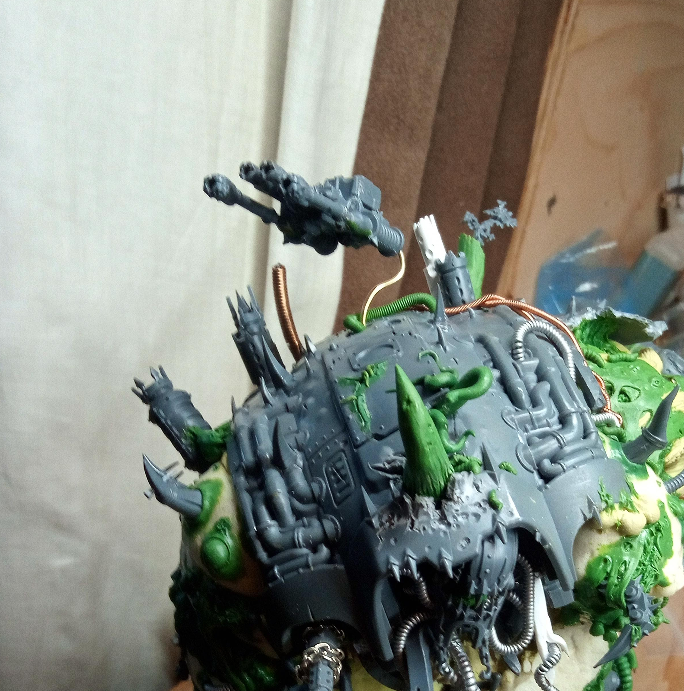 I never really had a firm plan for this part of the Nurgle Knight, my original sketch has a big eye visible underneath the cracked open cockpit door, and even that never made it to the final design. However, it soon became one of the most interesting and fun parts of the build.