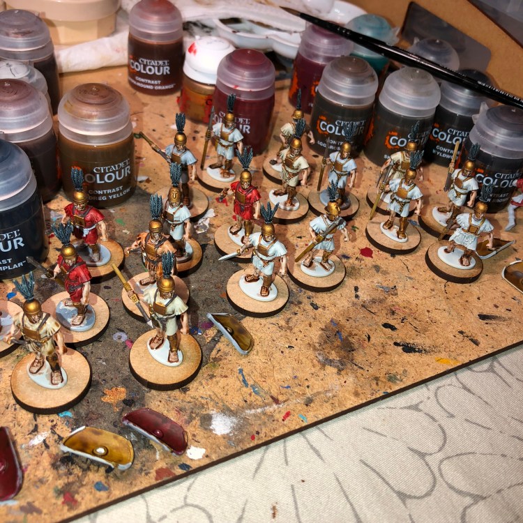 I’ve been doing some Republican Roman figures, and have blasted through about thirty of them with what feels like little effort. Why? Well, it’s my first real effort at using mostly contrast paints. Late to the party I know, but wow I’m impressed with how good an effect they can give for the effort required!