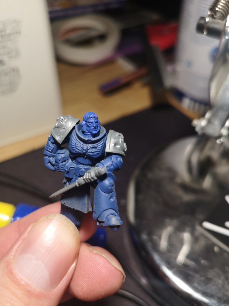 This month I wanted to test myself with painting space wolves with the Horus heresy scheme. It turned out ok but not great.
