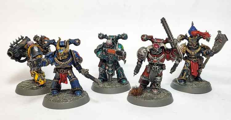 First up was a squad (9 models of a mixed legion) of chaos space marines. These were good fun to paint with mixing up the colour scheme of the various legions.