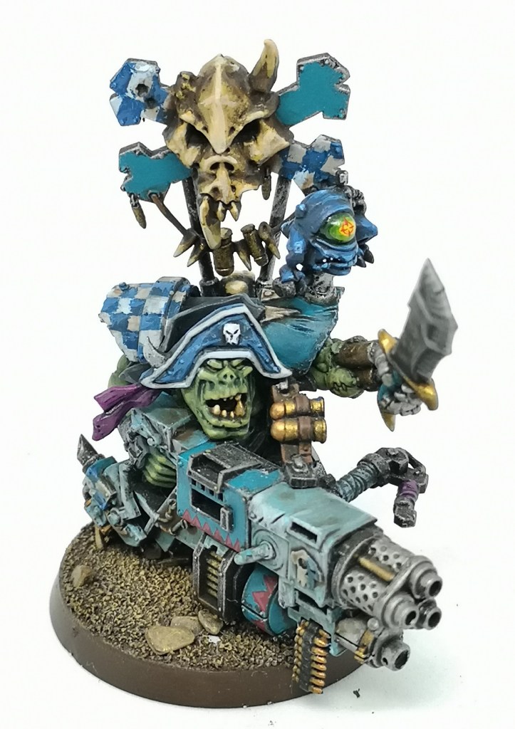 Here’s the Kaptin. I love the bionic arm on the model. I also had to give the target squig a targetting eye, fiddly stuff as you can imagine.