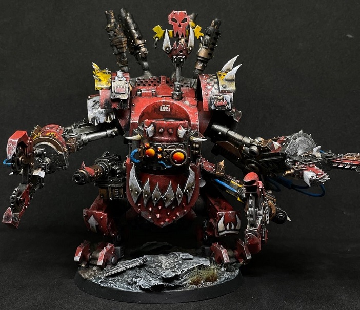 Thanks man! The scheme I copied from the recipient’s Instagram, it was interesting to do. It did actually change a bit as I was doing it…. Like at one point it had a couple of gold teeth but then I realised all of his Ork vehicles had exclusively white teeth. He got back to me and said he really liked the shades of red and yellow because they were vibrant and he noticed his newer stuff had bece more muted than his older stuff and the paint job has inspired him to go back to the old style 😄